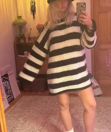 * Knit striped pullover sweater - oversized looking