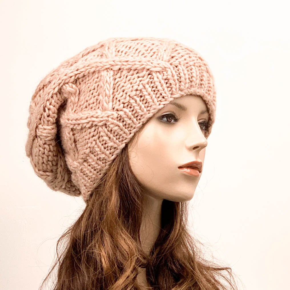 This chic hand knit beret is an new oversize version of lovely beret . It also features on beautiful diamond pattern.It is knitted in a wonderful warm merino wool chunky yarn that is comfy and super soft. Best item for winter!